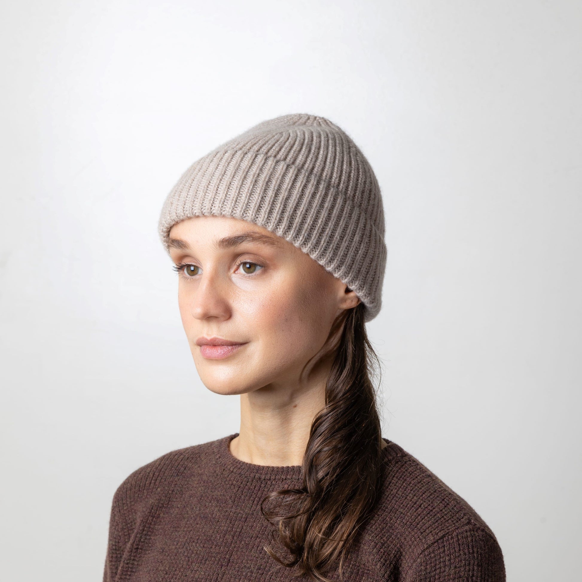 This elegant beanie is made from 100% Italian cashmere in fisherman rib stitch, ensuring the highest quality and luxurious feel. Perfect for adding a touch of sophistication to any outfit, this beanie is a must-have accessory for those seeking both style and comfort.